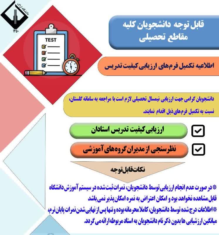 تمديد مهلت ارزشيابي اساتيد و مديران گروه هاي آموزشي